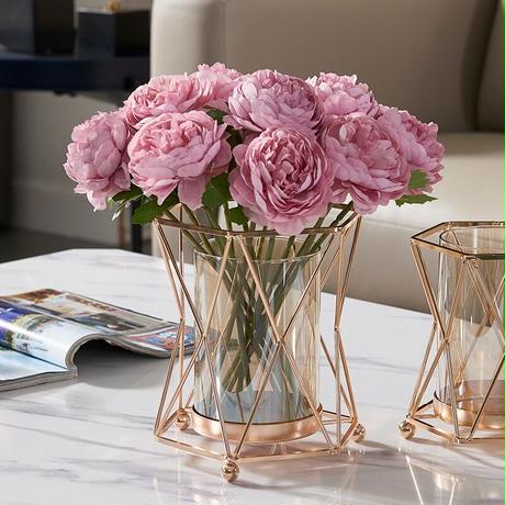 ゴールド網目フラワーベース+アートローズセット