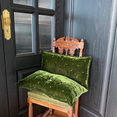 レトログリーンベルベットクッション